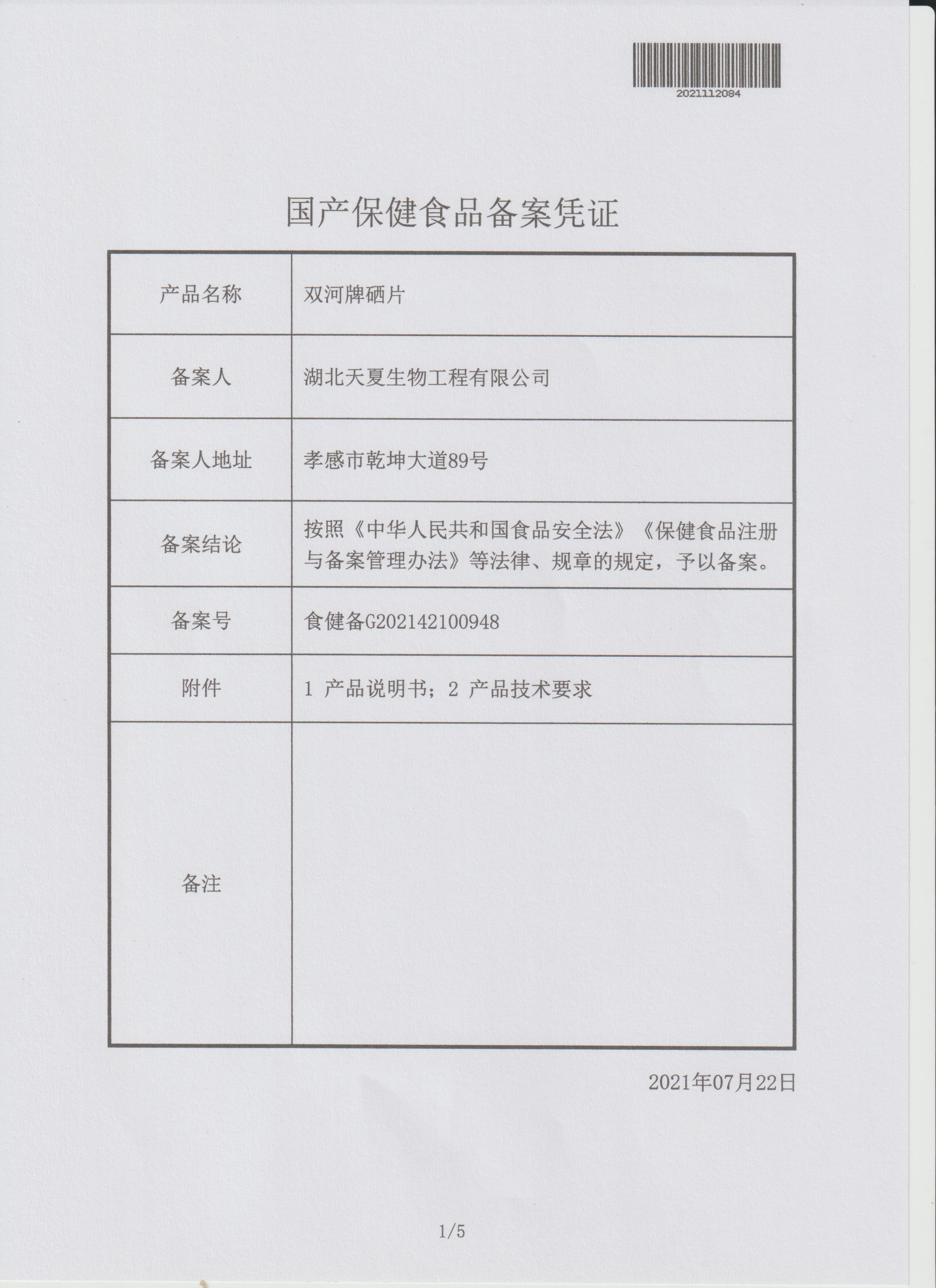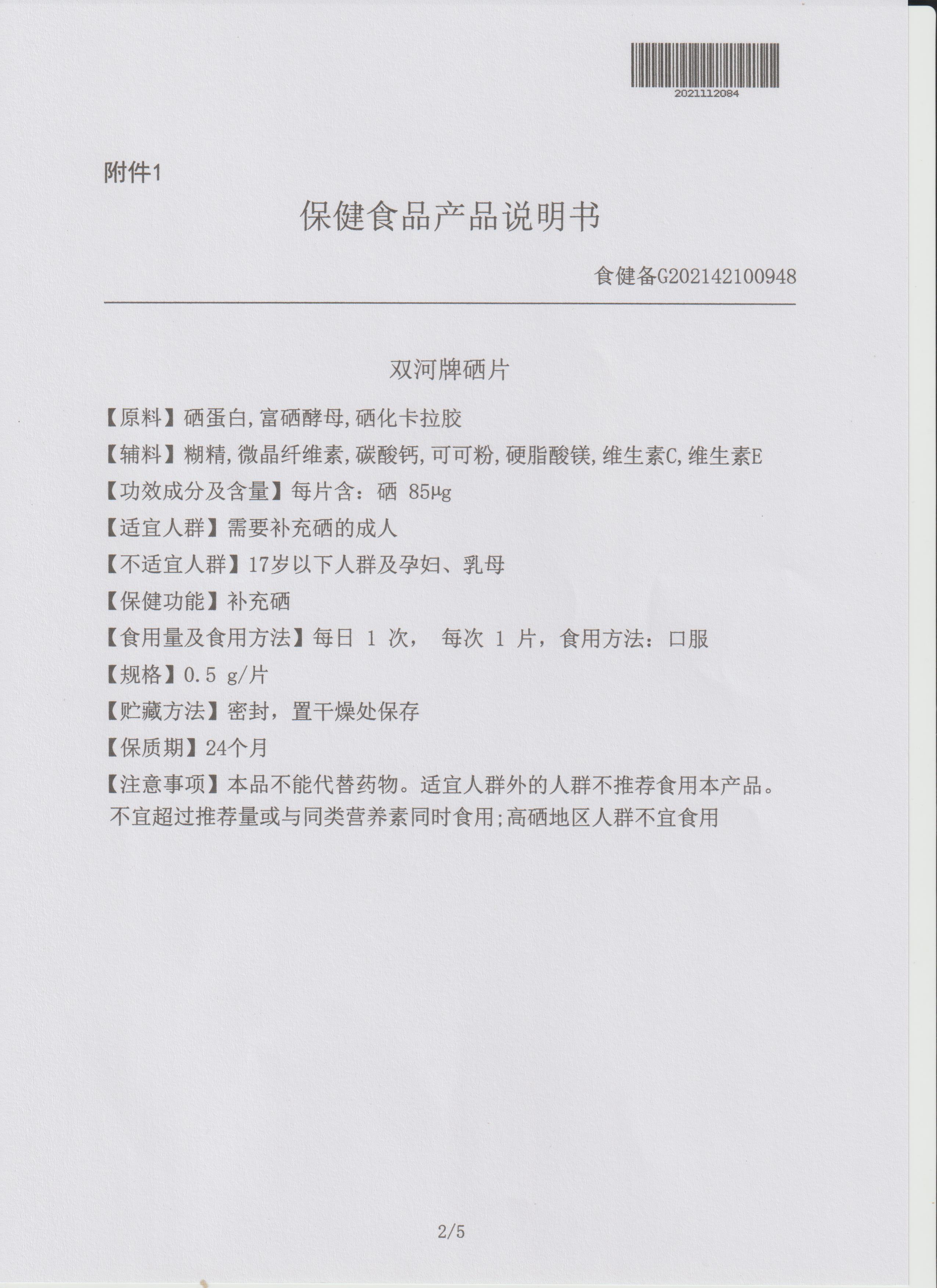 祝賀雙河牌硒片榮獲國(guó)家市場(chǎng)監(jiān)督管理局保健食品批文(食健備G202142100948)。