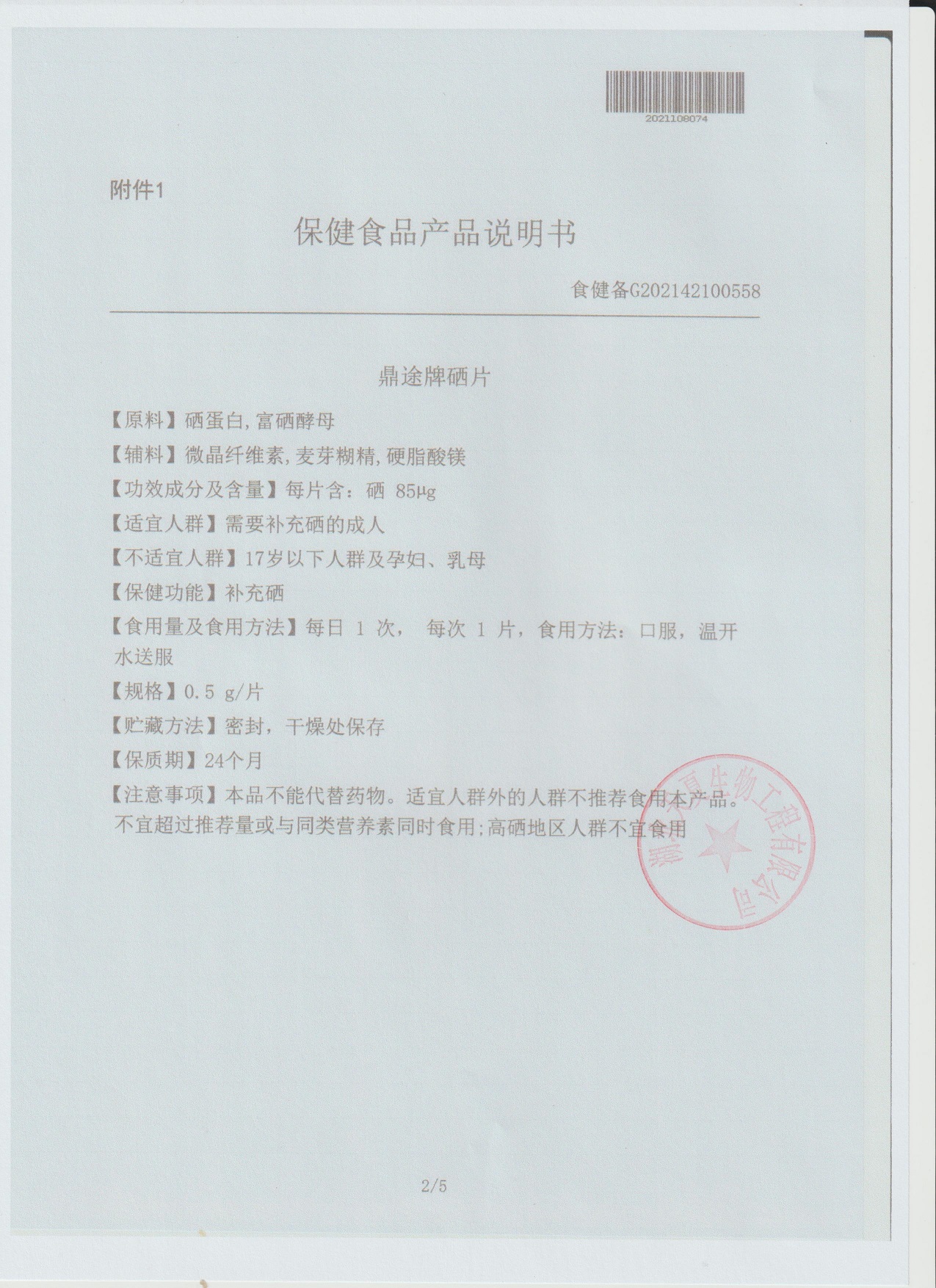 湖北天夏生物工程有限公司技術(shù)攻關(guān)項(xiàng)目,以二款第四代有機(jī)硒(硒蛋白和富硒酵母)雙硒融合、雙硒同補(bǔ)的鼎途牌硒片榮獲國家市場監(jiān)督管理局保健食品批文!食健備G202142100558